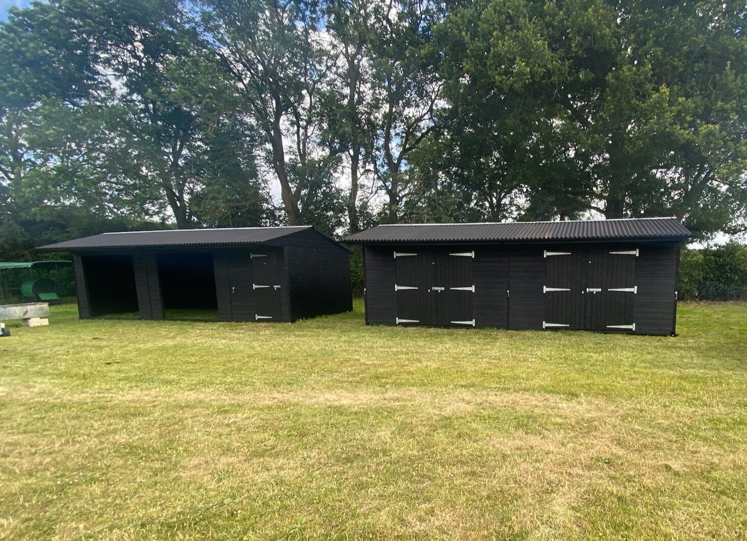 Double Mobile Field Shelter and Tack Room, Double Mobile Hay Barn both Painted Black