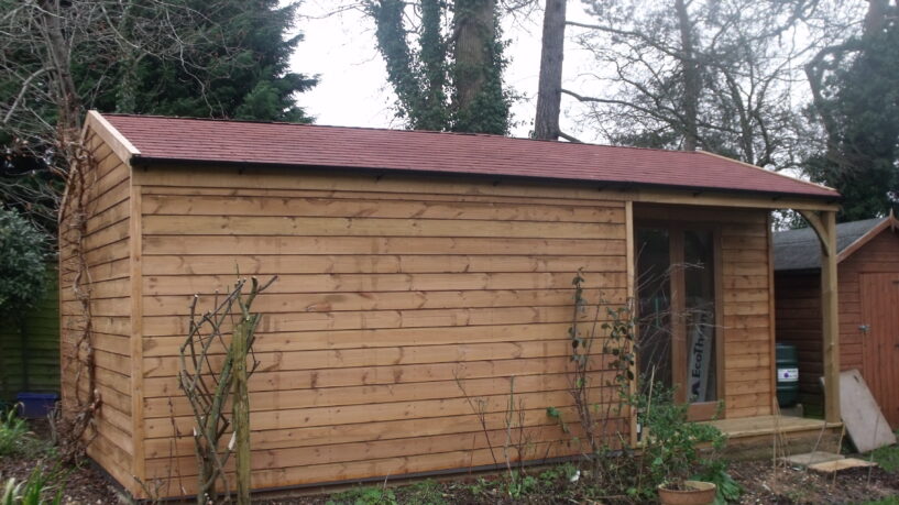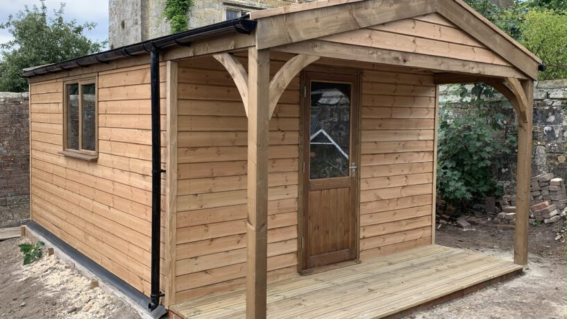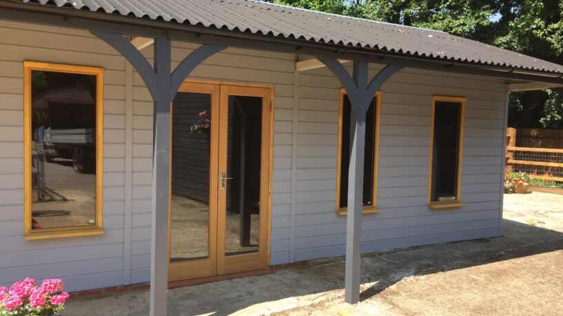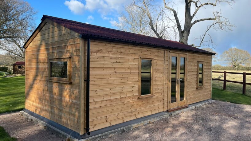 Our top-tier Premier Range boasts double-glazed casement windows, staddle stones, and a felt shingle or Onduvilla roof available in a variety of colours. The walls and trusses are lined with 12mm Wisa Spruce Plywood. It also comes with a 25-degree roof pitch and overhang lined with shiplap, making this garden office the ultimate, luxurious choice.